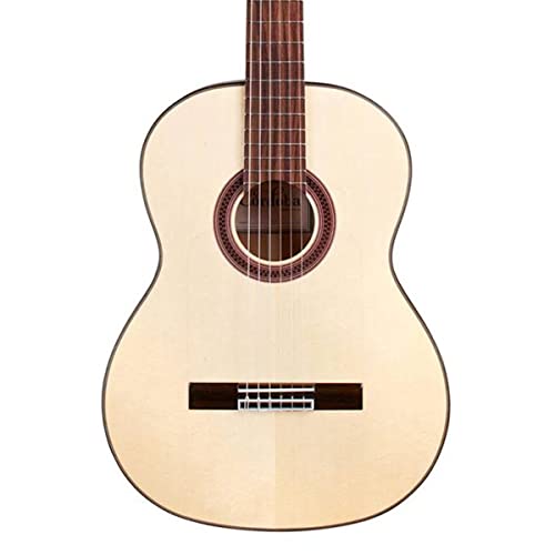 こちらのエチュードも人気のあるモデルで、上品で深みのあるサウンドと、洗練されたデザインが特徴のクラシックギターです。ソリッドシダートップとカナディアンワイルドチェリーのバックおよびサイドを採用しており、響きを良くするために薄い塗装が施されています。